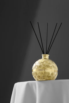 The fresh energy of lemon and bergamot meets red plum, creating a lively welcoming feeling at the beginning. The warm floral scent of rose and saffron adds a romantic yet modern presence to your living space. Finally, the soft diffusion of cedarwood, musk, and vanilla leaves a peaceful warmth in the environment and supports the long-lasting nature of the fragrance.